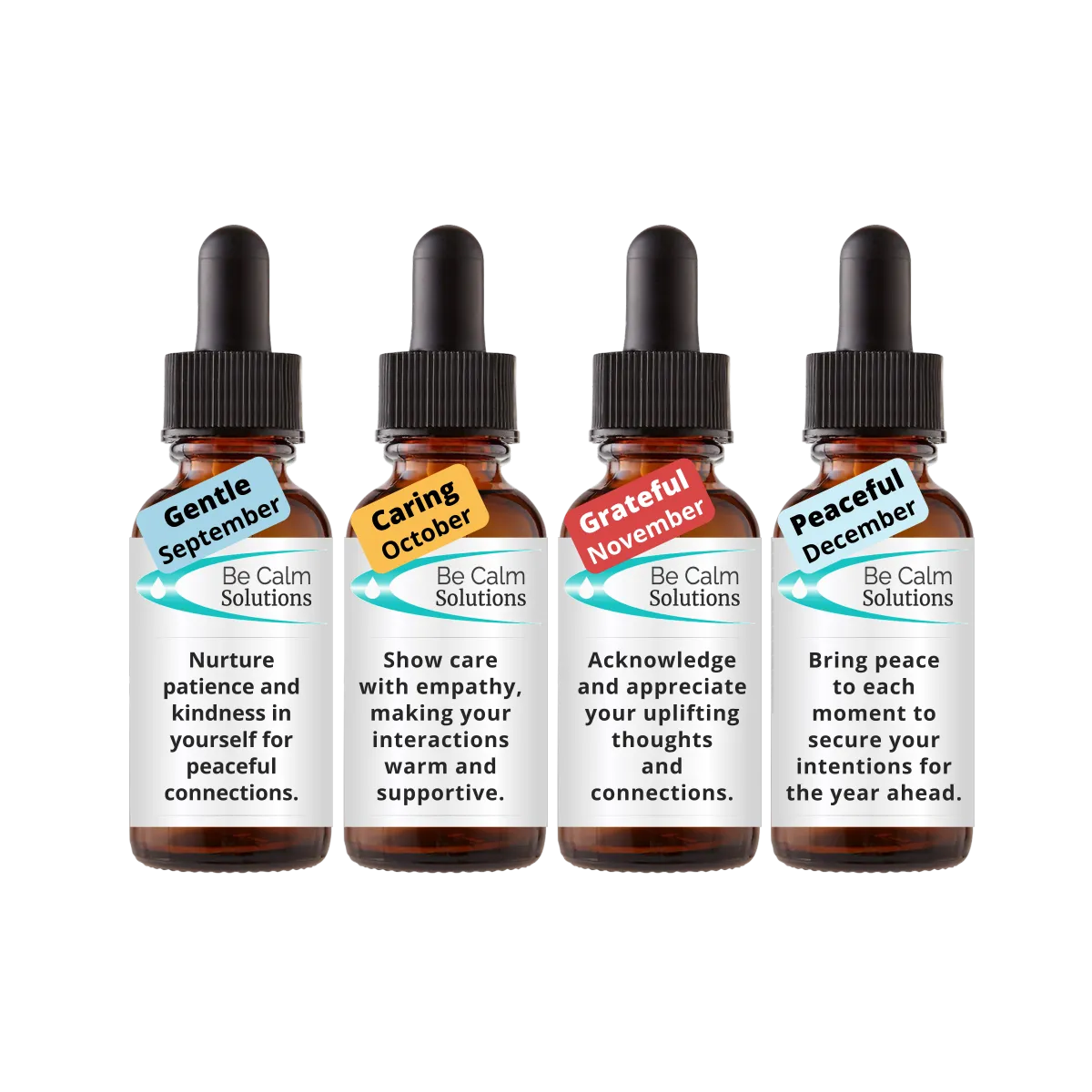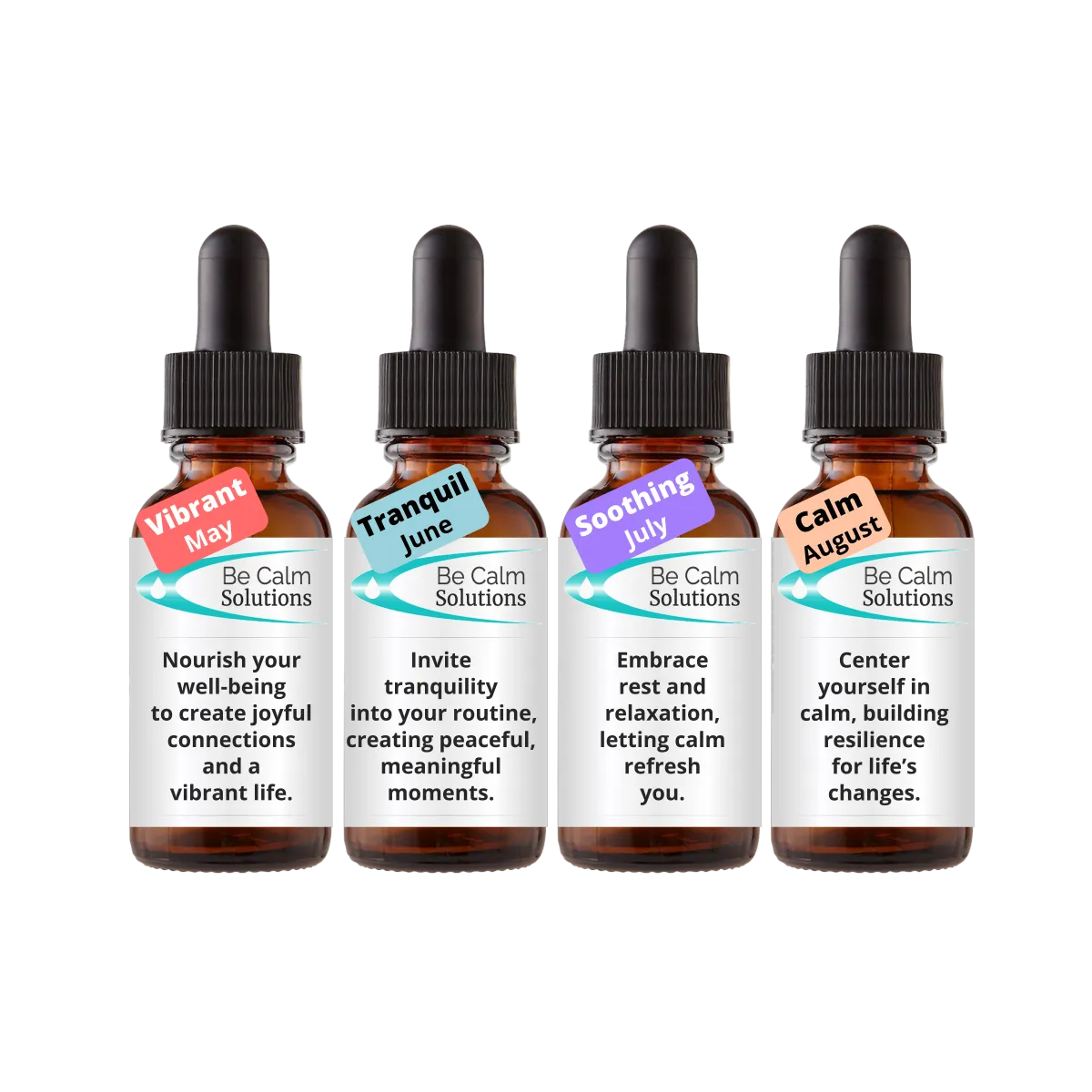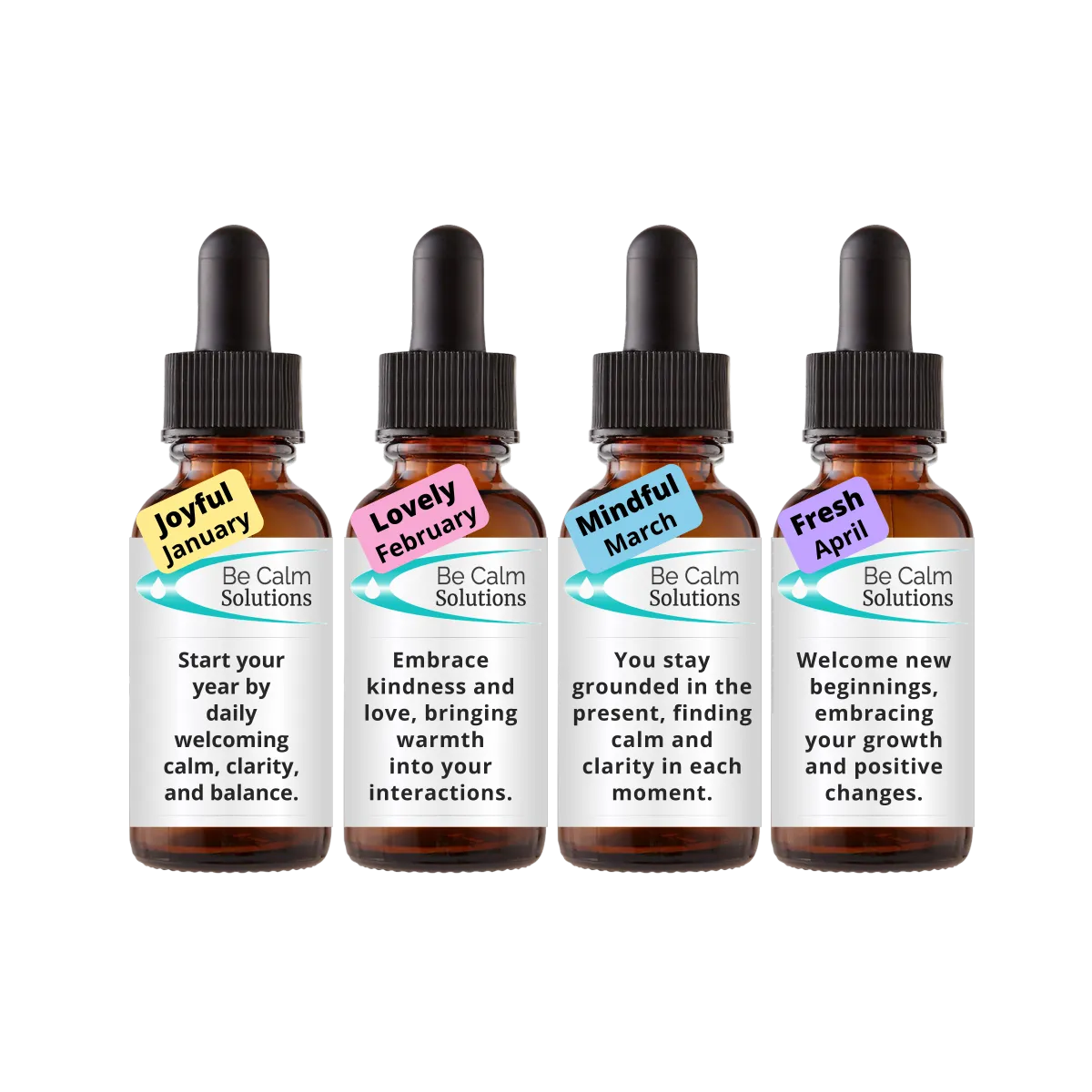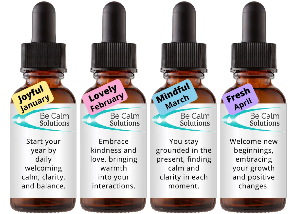At Be Calm Solutions, we recognize that every year has its own energetic pattern, and so does every month. We take that into account as we create each monthly blend, developing a fresh set of formulas for every new year.